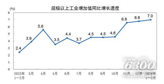 1—2月份,規(guī)模以上工業(yè)增加值同比實際增長7.0%(增加值增速均為扣除價格因素的實際增長率)。從環(huán)比看,2月份,規(guī)模以上工業(yè)增加值比上月增長0.56%。
