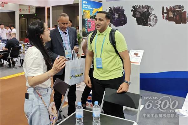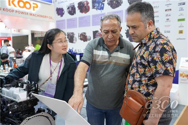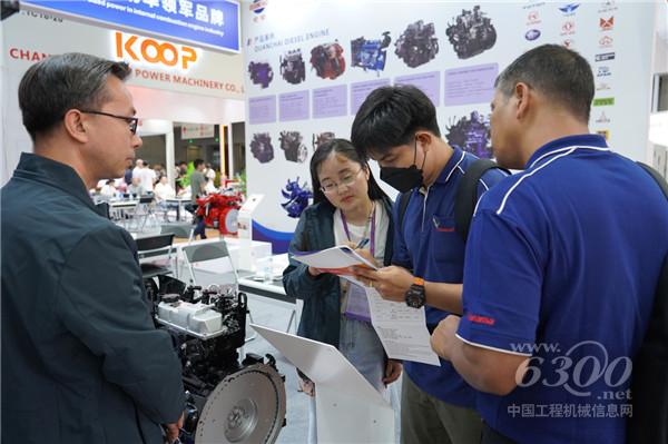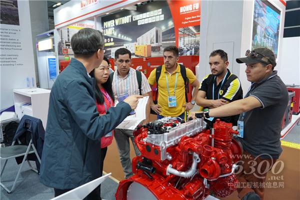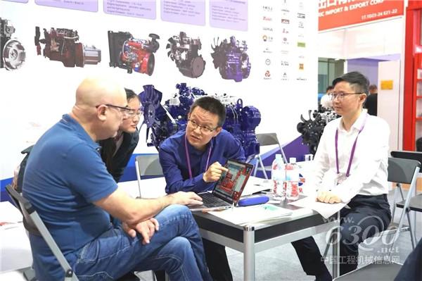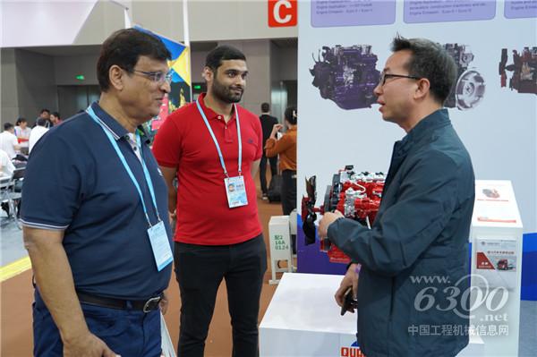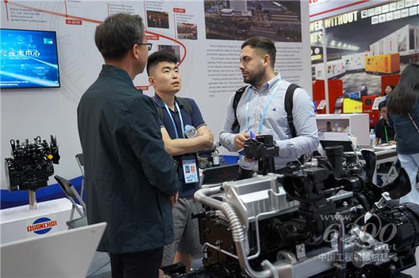 全柴動力展臺工作人員與海外客戶交流現(xiàn)場