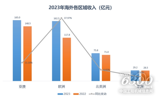 從區(qū)域來看,截止2023年底,三一重工海外產(chǎn)品銷售已覆蓋180多個國家與地區(qū),歐美已成為海外增長最快的區(qū)域