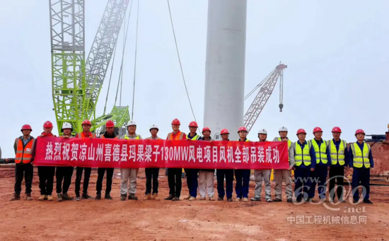 歷時數(shù)小時的吊裝作業(yè),在操作員的精準控制下中聯(lián)重科起重機不負眾望,完美完成了本次風機的吊裝任務。21臺風機全部完成吊裝,是項目進度的重大突破,為后續(xù)全容量并網(wǎng)發(fā)電奠定了堅實基礎。