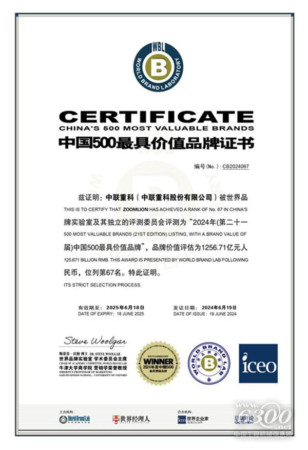 6. 中聯(lián)重科連續(xù)第21次上榜“中國(guó)500最具價(jià)值品牌”;