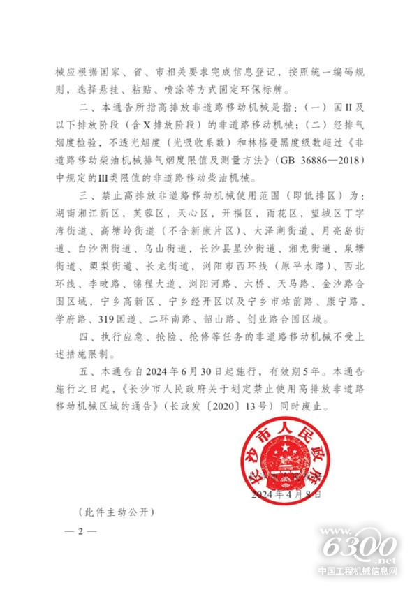 附:《長沙市人民政府關(guān)于劃定禁止使用高排放非道路移動機械區(qū)域的通告》