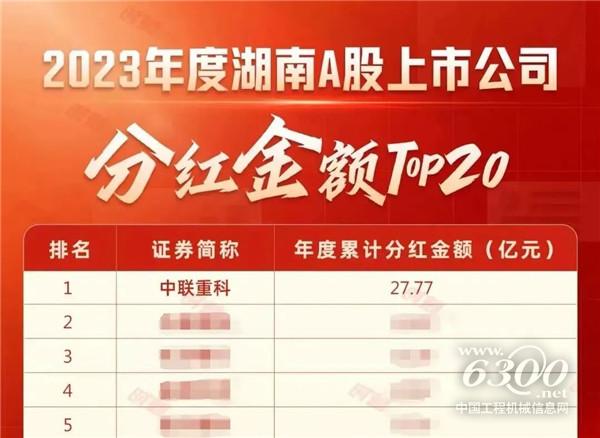 據(jù)悉,自2000年公司上市以來(lái),中聯(lián)重科一貫重視股東回報(bào),在可持續(xù)發(fā)展的前提下實(shí)行持續(xù)、穩(wěn)定的利潤(rùn)分配政策,截至2023年12月31日,累計(jì)現(xiàn)金分紅235億元,歷史整體分紅率約為42%,長(zhǎng)時(shí)間處于行業(yè)領(lǐng)先水平。近日,中聯(lián)重科榮登2023年度湖南A股上市公司分紅榜榜首,彰顯公司回報(bào)股東、提升投資者獲得感的責(zé)任擔(dān)當(dāng)。