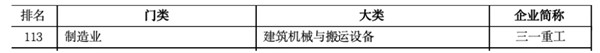 產(chǎn)業(yè)領(lǐng)軍企業(yè)的定義,是按照經(jīng)濟學的產(chǎn)業(yè)集中度CR4概念,選取在產(chǎn)業(yè)內(nèi)綜合得分排名前四名的企業(yè),分別為冠軍企業(yè)、亞軍企業(yè)、季軍企業(yè)、殿軍企業(yè),統(tǒng)稱為領(lǐng)軍企業(yè)。本次榜單涵蓋了90個大類產(chǎn)業(yè)中的360家企業(yè),三一重工在建筑機械與搬運設(shè)備行業(yè)中榮膺首位,獲得“冠軍企業(yè)”稱號,并在綜合排名中位列第113位。
