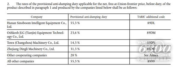 2024年7月12日,歐盟委員會發(fā)布公告,對原產于中國的移動式升降作業(yè)平臺(Mobile?Access?Equipment)作出反傾銷初裁,初步裁定對涉案產品征收14.3%~55.3%的臨時反傾銷稅。