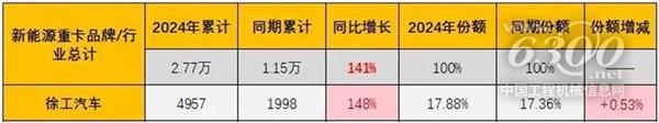 5.徐工新能源重卡累銷半年度行業(yè)第一;