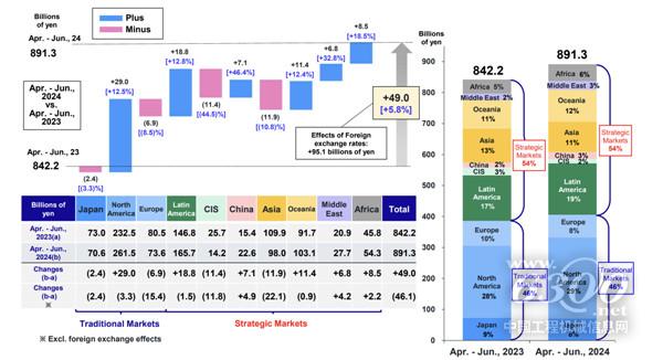 按區(qū)域看,報(bào)告期內(nèi)工程機(jī)械、采礦和公用事業(yè)設(shè)備8912.3億日元的總銷售額主要由北美、拉丁美洲和大洋洲等市場(chǎng)貢獻(xiàn),而歐洲、獨(dú)聯(lián)體、亞洲等市場(chǎng)有所下降。