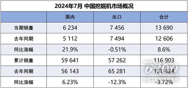 1.七月國內(nèi)市場挖掘機(jī)銷量6234臺(tái),同比增長21.9%;
