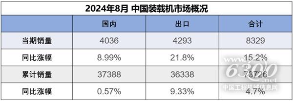 02 8月國內銷售裝載機4036臺,同比增長8.99%