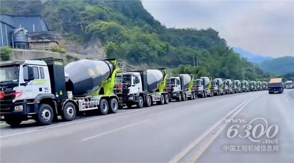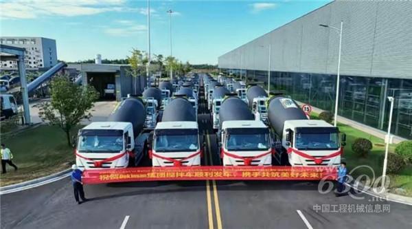 ▲中聯(lián)重科“凌冠”新能源攪拌車(chē)批量交付