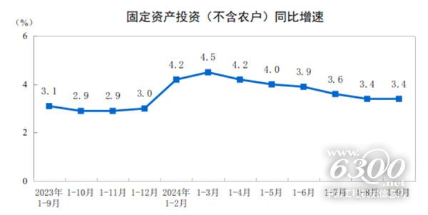 2024年1—9月份,全國固定資產(chǎn)投資(不含農(nóng)戶)378978億元,同比增長3.4%,其中,民間固定資產(chǎn)投資191001億元,下降0.2%。從環(huán)比看,9月份固定資產(chǎn)投資(不含農(nóng)戶)增長0.65%。