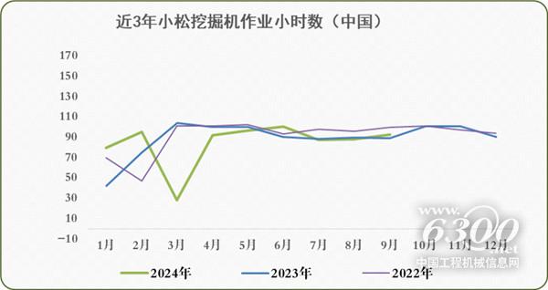 2024年9月小松挖掘機開工小時數(shù)為95.3小時 同比增長6.9%