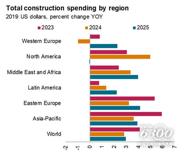 近日,標(biāo)普全球市場(chǎng)情報(bào)咨詢總監(jiān)Scott Hazelton在起重機(jī)與運(yùn)輸中東會(huì)議上表示,除北美市場(chǎng)外,預(yù)計(jì)全球大多數(shù)地區(qū)的建筑支出都會(huì)出現(xiàn)2025年逆轉(zhuǎn)增長(zhǎng)的情況,預(yù)測(cè)結(jié)果讓工程機(jī)械行業(yè)2025年的發(fā)展更為樂(lè)觀。
