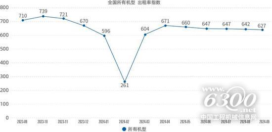 2024年9月升降工作平臺出租率指數(shù)為627點(diǎn),環(huán)比下降2.3%,同比下降11.7%。除40m以上機(jī)型出租率環(huán)比上漲11.4%外,其他所有機(jī)型出租率指數(shù)環(huán)比均略有下滑,下滑幅度最大的是20~24m機(jī)型,降幅為5.1%,降幅最小的是≤6m機(jī)型,降幅僅為0.4%。2024年9月出租率指數(shù)同比除40m以上機(jī)型略有上升外,其他機(jī)型同比均出現(xiàn)普遍下滑態(tài)勢,同比降幅超過15%的有8~12m、20~24m、26~28m和30~35m等4個機(jī)型,其中26~28m機(jī)型降幅最大,達(dá)到19.2%。(出租率是以臺天數(shù)為基準(zhǔn)進(jìn)行計算,100%出租率對應(yīng)1000點(diǎn)。)