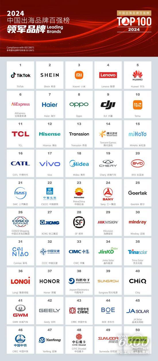 近日,《中國(guó)出海品牌百?gòu)?qiáng)榜》(以下簡(jiǎn)稱《百?gòu)?qiáng)榜》)發(fā)布,三一集團(tuán)憑借品牌全球化的出色表現(xiàn),榮列“領(lǐng)軍品牌50強(qiáng)”第24位,為工程機(jī)械行業(yè)排名最高品牌。