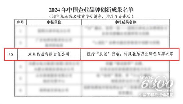 近日,中國質(zhì)量協(xié)會(huì)發(fā)布“2024年中國企業(yè)品牌創(chuàng)新成果”名單,雙星集團(tuán)《踐行“雙碳”戰(zhàn)略,構(gòu)建輪胎行業(yè)綠色品牌之路》榮獲“中國企業(yè)品牌創(chuàng)新成果獎(jiǎng)”,成為輪胎行業(yè)唯一獲此殊榮的企業(yè)。