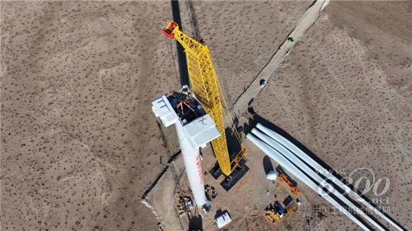 施工現(xiàn)場,XLC18000M履帶起重機(jī)采用138+8m標(biāo)準(zhǔn)風(fēng)電工況,將單片葉片長112m,轂中心高達(dá)125m的風(fēng)電機(jī)組完美起吊,精準(zhǔn)完成塔筒、機(jī)艙、葉輪的高效對接,完美的施工表現(xiàn)贏得了現(xiàn)場工作人員的一致好評。