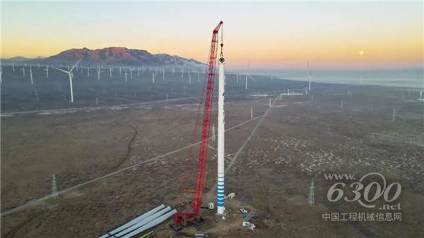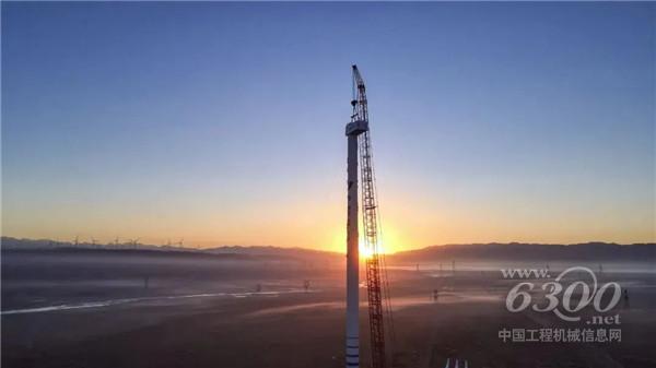 11月21日凌晨,新疆華電達坂城50萬千瓦風電項目二標段,首臺10MW風機由三一SCC18000TM-8完成全部吊裝工作。從11月11日開始組裝、15日起桿、16日凌晨開始第一節(jié)塔筒吊裝,SCC18000TM-8及施工、服務(wù)團隊一路馬不停蹄、挑燈夜戰(zhàn),搶占低風窗口,在預(yù)定時間內(nèi)完成了該機位的所有安裝工作。