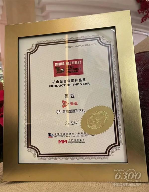 此次峰會除了發(fā)布行業(yè)權威的TOP全球排名,也頒發(fā)了2024礦山設備年度產品獎。經過專家評委客觀、公正、權威的評判,蓋亞Q6i在眾多明星產品中,憑借領先行業(yè)的智能化功能,斬獲2024礦山設備年度產品獎。