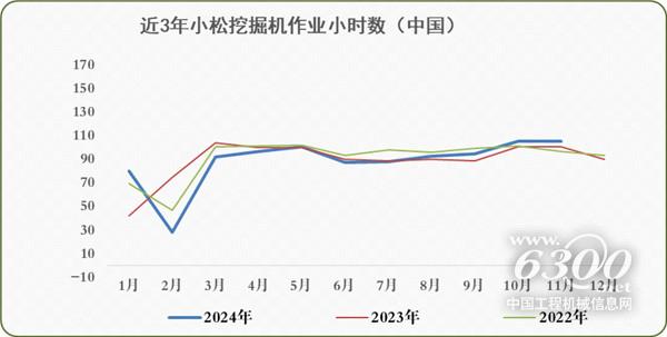 2024年11月,中國(guó)地區(qū)小松挖掘機(jī)開(kāi)工小時(shí)數(shù)為105.4小時(shí),同比增長(zhǎng)4.4%。