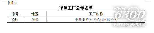 中聯(lián)重科土方機(jī)械有限公司入選國家級綠色工廠