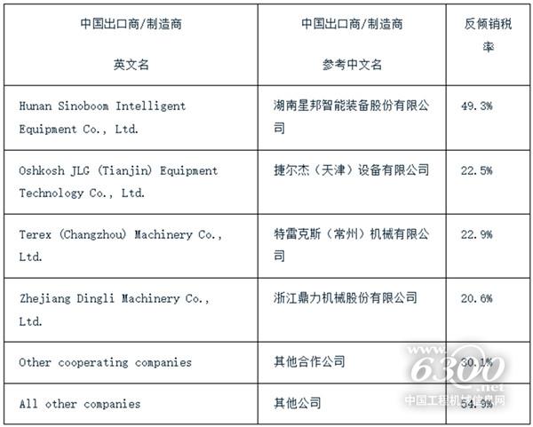 2025年1月9日,歐盟委員會發(fā)布公告,對原產(chǎn)于中國的移動式升降作業(yè)平臺(Mobile Access Equipment)作出反傾銷終裁,裁定對涉案產(chǎn)品征收20.6%~54.9%的反傾銷稅,稅率詳見附表。