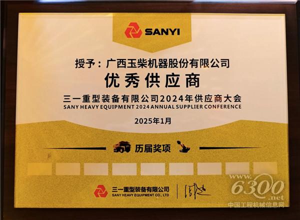 近日,三一重型裝備有限公司(以下簡稱“三一重裝”)2024年度供應(yīng)商大會(huì)在遼寧沈陽召開。會(huì)上,玉柴榮獲三一重裝2024年度“優(yōu)秀供應(yīng)商”。