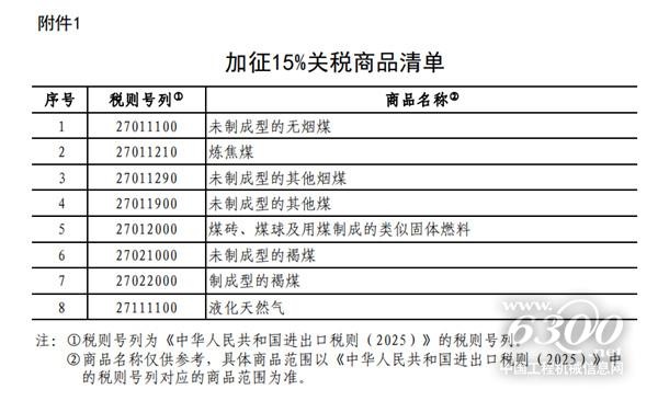 一、對煤炭、液化天然氣加征15%關稅,具體商品范圍見附件1。