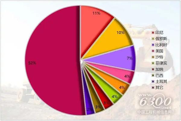 2024年,我國挖掘機出口額達到82.2億美元,同比2023年的83億美元下降1%。印度尼西亞、俄羅斯、比利時為出口目的國前三名,占比接近三成。
