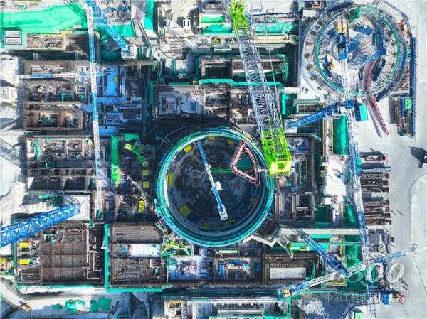 據(jù)悉,3RS非能動(dòng)堆腔注水箱為堆腔冷卻系統(tǒng)的重要組成部分,水箱為全封閉式扇形結(jié)構(gòu),建造過程中應(yīng)用不銹鋼覆面自動(dòng)焊接技術(shù)、定制化支撐桁架、整體模塊化施工工藝等前沿技術(shù),通過中聯(lián)重科2000噸級(jí)履帶式起重機(jī)整體吊裝就位。