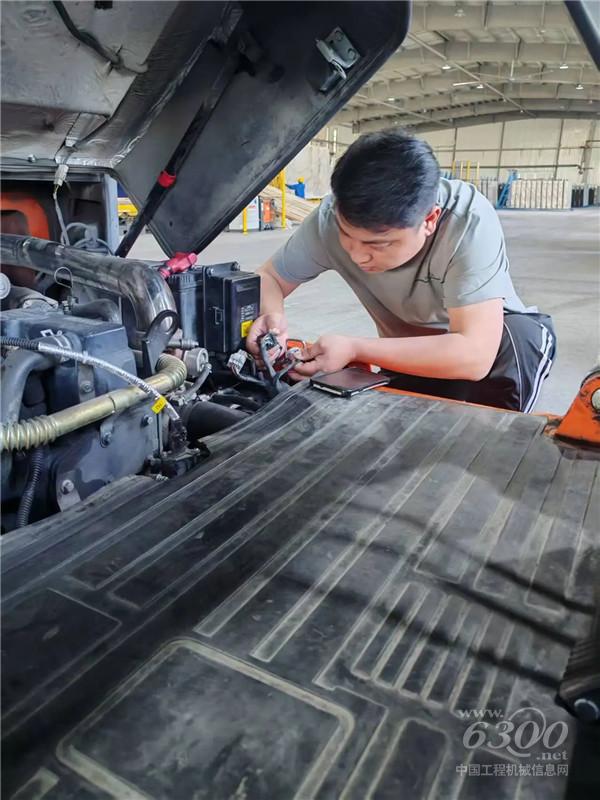 抵達(dá)故障現(xiàn)場(chǎng)后,王文飛嚴(yán)格遵循全柴標(biāo)準(zhǔn)化作業(yè)流程,在發(fā)動(dòng)機(jī)艙高溫環(huán)境下,運(yùn)用系統(tǒng)化檢測(cè)手段,對(duì)叉車進(jìn)行全方位故障排查。憑借深厚的專業(yè)技術(shù)積淀與嚴(yán)謹(jǐn)細(xì)致的工作態(tài)度,其迅速鎖定隱蔽性線束老化問題。在狹窄的維修空間內(nèi),王文飛嚴(yán)格執(zhí)行全柴維修工藝標(biāo)準(zhǔn),規(guī)范操作、精細(xì)作業(yè),確保維修質(zhì)量達(dá)到最高要求。故障修復(fù)完成后,為切實(shí)保障設(shè)備運(yùn)行穩(wěn)定性與可靠性,其嚴(yán)格依照全柴售后服務(wù)規(guī)范,協(xié)同客戶開展長達(dá) 12 小時(shí)的全天候路試工作,以科學(xué)嚴(yán)謹(jǐn)?shù)尿?yàn)證流程,全面檢驗(yàn)維修成果。