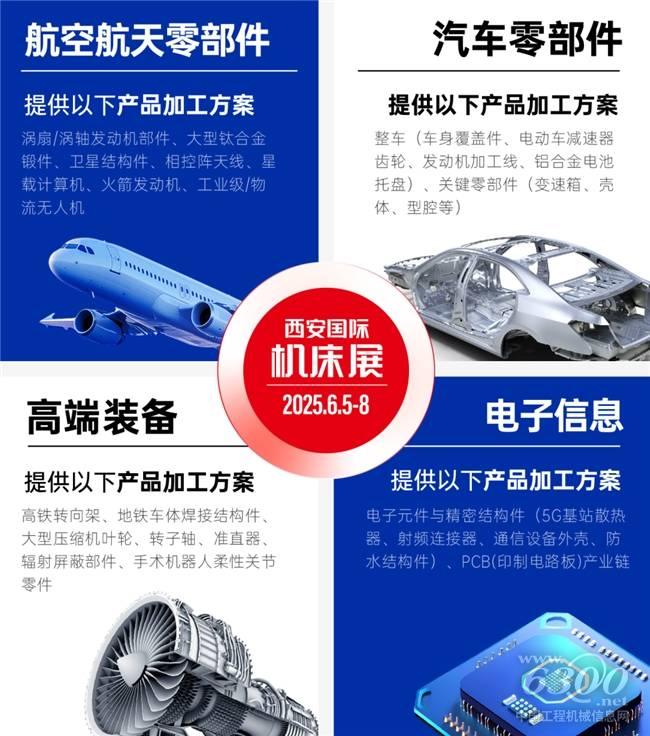 2025西安國際機床展5大主題聯(lián)動,金屬切削機床展區(qū)匯聚五軸聯(lián)動、車銑復(fù)合等精密加工設(shè)備;金屬成形機床展區(qū)展示智能沖壓、激光切割等高效成型方案;工業(yè)自動化及機器人專區(qū)聚焦柔性產(chǎn)線與協(xié)作機器人應(yīng)用;機床附件與磨削工量具展區(qū)則提供高精度夾具、數(shù)控刀具、精密磨床及智能檢測系統(tǒng)等配套支持……