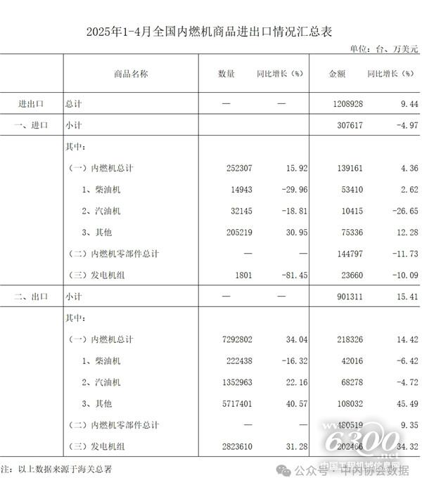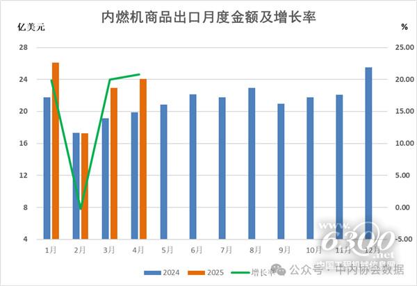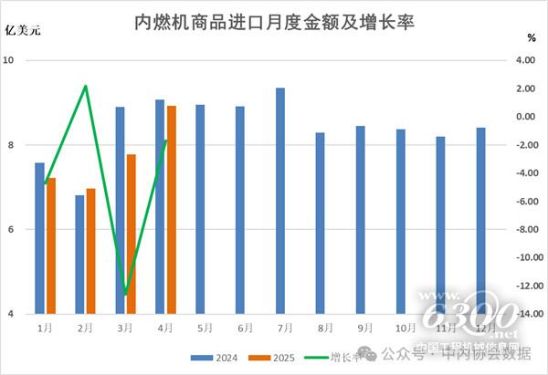據(jù)海關(guān)總署數(shù)據(jù)整理,2025年1-4月內(nèi)燃機(jī)行業(yè)進(jìn)出口總額120.89億美元,同比增長9.44%,其中,進(jìn)口30.76億美元,同比增長-4.97%,出口90.13億美元,同比增長15.11%。