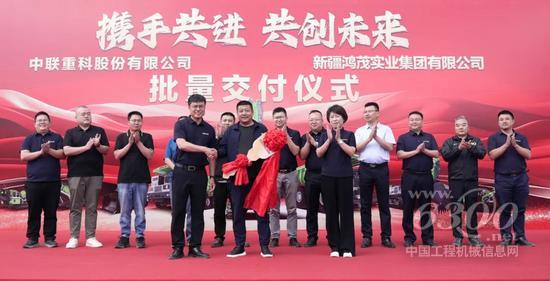 近日,在新疆壯麗的天山腳下,中聯(lián)重科隆重舉行大型礦山機(jī)械設(shè)備批量交付儀式,向戰(zhàn)略合作伙伴新疆鴻茂實(shí)業(yè)集團(tuán)(以下簡(jiǎn)稱:新疆鴻茂)交付包含全球最大混動(dòng)寬體車ZT160HEV、百噸級(jí)礦挖E1350G在內(nèi)的數(shù)百臺(tái)高端裝備。中聯(lián)重科副總裁袁野、副總裁黃群出席活動(dòng),并向新疆鴻茂交付象征合作共贏的金鑰匙。