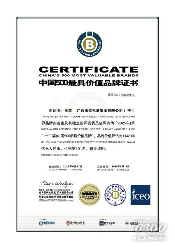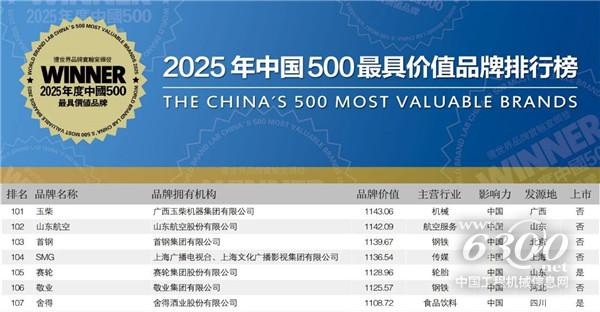 6月18日,2025年(第二十二屆)世界品牌大會(huì)暨中國500最具價(jià)值品牌發(fā)布會(huì)在北京舉行。玉柴憑借卓越的品牌影響力和持續(xù)創(chuàng)新的企業(yè)實(shí)力,以1143.06億元的品牌價(jià)值,位列“中國500最具價(jià)值品牌”榜單第101名、內(nèi)燃機(jī)行業(yè)首位。