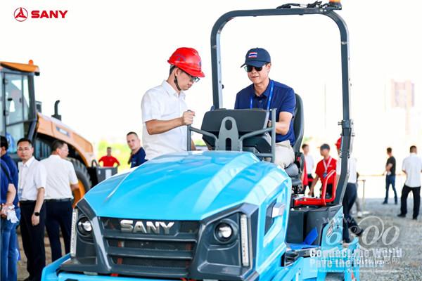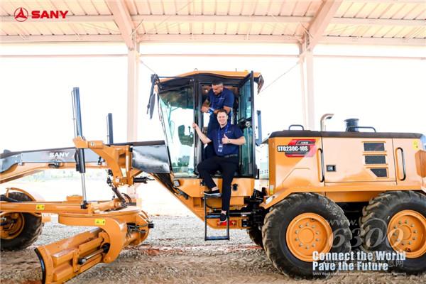 16日上午,全球客戶代表來到三一泵送新城?,F(xiàn)場59臺三一路面機械設備(含配件)組成宏大矩陣,全面展示三一在路面機械領域的創(chuàng)新成果。電動壓路機、電動銑刨機、單鋼輪壓路機、平地機等明星產(chǎn)品吸引了眾多客戶試乘試駕。