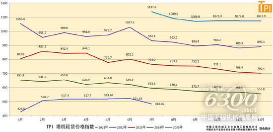 塔機(jī)租賃價(jià)格指數(shù)(2021年7月—2025年6月)