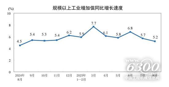 8月份,規(guī)模以上工業(yè)增加值同比實際增長5.2%(增加值增速均為扣除價格因素的實際增長率)。從環(huán)比看,8月份,規(guī)模以上工業(yè)增加值比上月增長0.37%。1—8月份,規(guī)模以上工業(yè)增加值同比增長6.2%。
