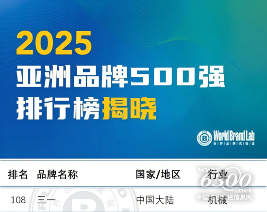 9月24日,世界品牌實(shí)驗(yàn)室(World Brand Lab)發(fā)布2025年(第二十屆)《亞洲品牌500強(qiáng)》年度報(bào)告,共有20個(gè)國家和地區(qū)的超級(jí)品牌入選。三一以中國排名54,亞洲排名108的名次成功上榜,并摘得中國工程機(jī)械品牌桂冠。