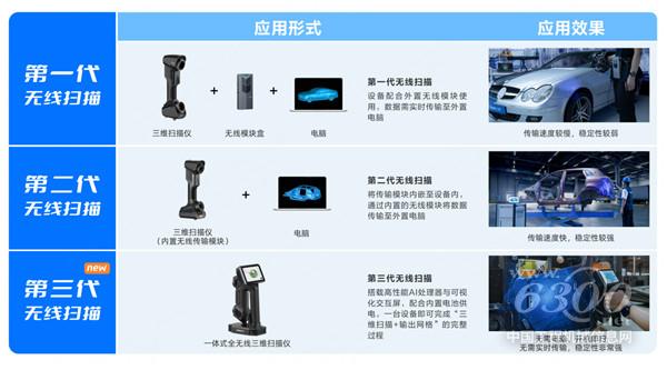 隨著高精度三維掃描技術(shù)的飛速發(fā)展,無線掃描這一應(yīng)用形式不斷深化,經(jīng)過這些年的發(fā)展,先臨三維已經(jīng)歷經(jīng)第一代、第二代直至第三代技術(shù)。第一代技術(shù)需要配合外置無線模塊使用,通過外置的無線模塊將數(shù)據(jù)傳輸至外置電腦,第二代則在第一代基礎(chǔ)上進(jìn)行升級(jí),將傳輸模塊內(nèi)嵌至設(shè)備內(nèi),通過內(nèi)置的無線模塊將數(shù)據(jù)傳輸至外置電腦。而第三代技術(shù)則是實(shí)現(xiàn)了進(jìn)一步的跨越,其在設(shè)備上搭載高性能AI處理器與可視化交互屏,類似在設(shè)備內(nèi)集成了一臺(tái)電腦,可以在設(shè)備內(nèi)完成數(shù)據(jù)獲取過程中所需的計(jì)算功能,配合內(nèi)置電池供電,一臺(tái)設(shè)備即可完成“三維掃描+輸出網(wǎng)格”的完整過程,便攜高效。