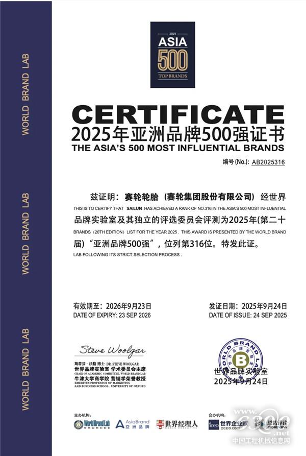 9月24日,全球權威品牌評估機構世界品牌實驗室(World Brand Lab)在2025年亞洲品牌大會上發(fā)布《亞洲品牌500強》榜單。賽輪集團以1128.96億元品牌價值再度上榜,位列第316位,品牌價值較去年提升123億元。這是賽輪連續(xù)第七年蟬聯(lián)該榜單,品牌價值與排名實現(xiàn)持續(xù)“雙增長”。