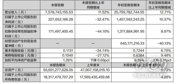 2025年第三季度,柳工實現(xiàn)營業(yè)收入75.79億元,同比增長11.52%;歸母凈利潤2.28億元,同比下降32.47%。