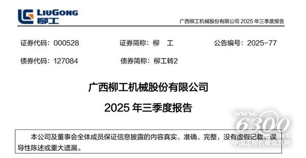 2025年前三季度,柳工實現(xiàn)營業(yè)收入257.60億元,同比增長12.71%;歸屬于上市公司股東的凈利潤14.58億元,同比增長10.37%。基本每股收益0.7244元,同比增長6.70%。