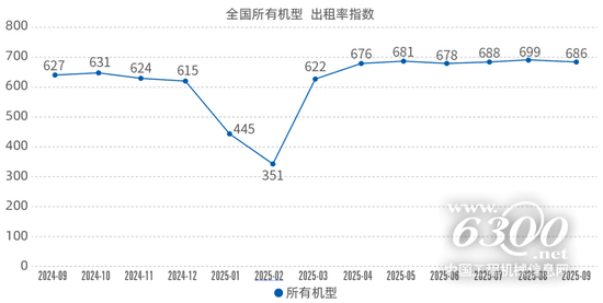 2025年9月升降工作平臺(tái)租賃行業(yè)出租率指數(shù)