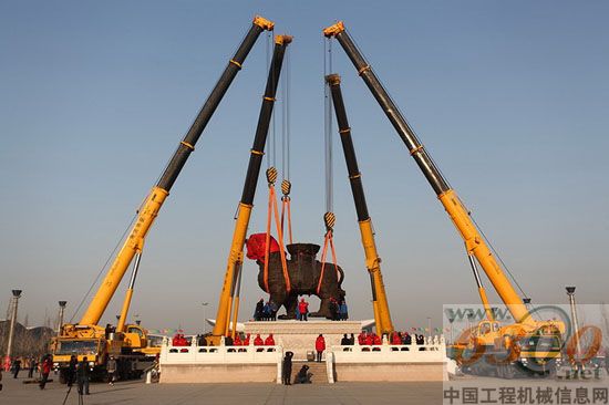 3月26日清晨,六臺(tái)徐工QAY300、QAY200等大噸位起重機(jī)與四寶之一的鐵獅子同時(shí)出現(xiàn)在滄州獅城公園里。在起重機(jī)群共同作業(yè)下,歷時(shí)3個(gè)小時(shí),鐵獅子安穩(wěn)地垂放在基座上。當(dāng)鐵獅子除去周身的吊裝保護(hù)裝置后,露出了威武雄壯神奇非凡的豪氣,見證了這一歷史時(shí)刻,現(xiàn)場(chǎng)一片歡騰。
