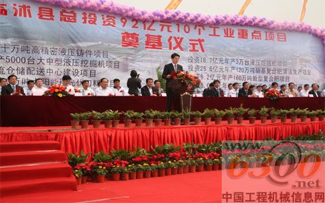 彩旗與飄帶同飛,鼓樂同禮炮齊鳴。5月6日上午,臨沭縣10個工業(yè)重點項目集中奠基儀式在山東常林集團(tuán)40萬噸高精密液壓鑄件項目現(xiàn)場隆重舉行,山東常林集團(tuán)40萬噸高精密液壓鑄件、年產(chǎn)3萬臺液壓挖掘機(jī)等2個重點項目參加了集中奠基。臨沂市委副書記、市長張務(wù)鋒,市政協(xié)主席孟憲海,市委常委、組織部部長李剛,市人大常委會副主任于中華,市政府市長助理張凌霄,市政府秘書長錢迎偉,市發(fā)改委等市直有關(guān)部門負(fù)責(zé)人,孫豐剛、任慶虎等縣領(lǐng)導(dǎo)和縣直有關(guān)部門主要負(fù)責(zé)人,以及山東常林集團(tuán)董事長張義華、總裁鐘默等出席項目奠基儀式。縣委副書記、縣長任慶虎主持項目奠基儀式。