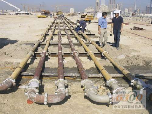 當(dāng)Unimix公司(阿聯(lián)酋迪拜塔的混凝土供應(yīng)商和泵送服務(wù)商)決定委托普茨邁斯特(Putzmeister)公司供應(yīng)和安裝拖泵和布料桿系統(tǒng)時(shí)需要對(duì)合作伙伴的技術(shù)水平和可靠性有充分的信任。通過(guò)早期的拖泵測(cè)試,普茨邁斯特公司已經(jīng)確定用泵送高度超過(guò)600米的混凝土拖泵和混凝土輸送管,出口排量為30 m3/h;還了解到,為了穩(wěn)定,Burj Dubai大廈的頂部將從156層開始使用輕型鋼結(jié)構(gòu),混凝土樓板將澆注到第160層(高度611米)。 在全面的預(yù)備測(cè)試中模擬超高層建筑的拖泵輸送 2005年初,普茨邁斯特在德國(guó)總部和迪拜的施工現(xiàn)場(chǎng)作了充分的準(zhǔn)備并配備相應(yīng)的人員,對(duì)拖泵和輸送管線進(jìn)行了一系列全面的測(cè)試,普茨邁斯特的在當(dāng)?shù)氐拇砩蘂erman Gulf公司提供了支持。測(cè)試的目的是根據(jù)混凝土在輸送管線中模擬的壓力以及混凝土的摩擦并將其轉(zhuǎn)化為超高層建筑的泵送系統(tǒng)。測(cè)試使用的拖泵型號(hào)為BSA14000 HP-D超高層建筑用拖泵和DN125 ZX輸送管線。
