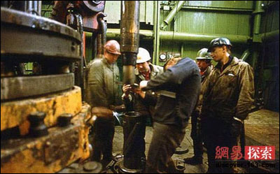 照片上這些站在一個(gè)鉆機(jī)旁邊的工人們負(fù)責(zé)科拉超深鉆洞的鉆探工作,他們必須生活在這個(gè)偏遠(yuǎn)的地區(qū)。事實(shí)上在這個(gè)超深鉆井周?chē)泻芏嗥髽I(yè)生活區(qū)拔地而起??缕澛宸蛩够谒臅?shū)中對(duì)此進(jìn)行了描寫(xiě):“這里有衛(wèi)生設(shè)施、浴室和急救站,以及迎合工人白天和夜生活的小賣(mài)部,還有為鉆探設(shè)備操作人員提供正常生活條件的預(yù)防性醫(yī)療救助大廳和醫(yī)療室。”
