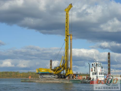 山河智能SA20/70S102旋挖鉆機(jī)是在美國(guó)國(guó)內(nèi)完成一系列重點(diǎn)工程后轉(zhuǎn)戰(zhàn)到加拿大施工,參與在加拿大西北省Yellowknife市Fort Providence的Mackenzie river斜拉架橋的橋墩樁基礎(chǔ)施工。施工方在考察多種品牌的旋挖鉆機(jī)后,選擇了這“Made in China”的湖南“SUINWARD”旋挖鉆機(jī),并負(fù)責(zé)該工程的大部分樁基礎(chǔ)施工。該橋采用斜拉橋結(jié)構(gòu),8個(gè)橋墩,每個(gè)橋墩首先用旋挖鉆機(jī)鉆350個(gè)24英寸的孔,周圍96個(gè)孔,中間254個(gè)孔。每個(gè)孔都用GPS定位,定位精度為25mm以內(nèi)。孔鉆完后,周遍用振動(dòng)錘打入鋼板樁形成圍堰,中間部分再用沖抓斗施工形成樁孔,然后整體澆注混凝土形成基礎(chǔ)承臺(tái)。以上施工幾乎全部是水上作業(yè),狹窄的作業(yè)空間,特定的環(huán)境,山河智能旋挖鉆機(jī)的穩(wěn)定性的優(yōu)勢(shì)得到充分體現(xiàn)。