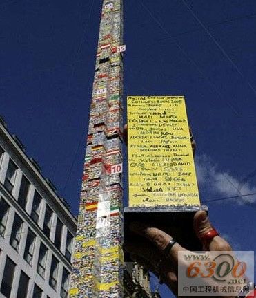 ![]() 工人展現(xiàn)塔頂 該塔搭建在維也納市政廳的背后,由于塔身太高,建筑過程中不得不動用高空作業(yè)車將積木一塊塊放上去,這樣浩大的規(guī)模,無疑吸引了眾多前來奧地利旅游的各位觀賞者駐足停望。